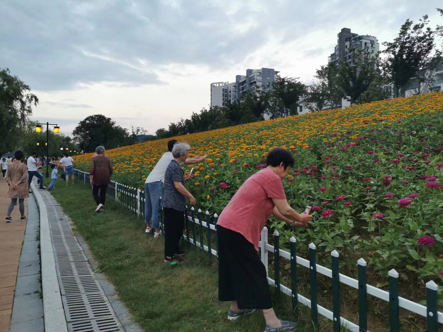 初夏的傍晚,新安江畔清風(fēng)徐徐,漫步在黃口橋頭南側(cè)江邊,成片的百日草錯(cuò)落有致,迎風(fēng)搖曳,宛如一幅迷人的五彩畫(huà)卷,又似色彩絢麗的綢緞,唯美又浪漫,看到眼前的美景,市民游客紛紛駐足拍攝。