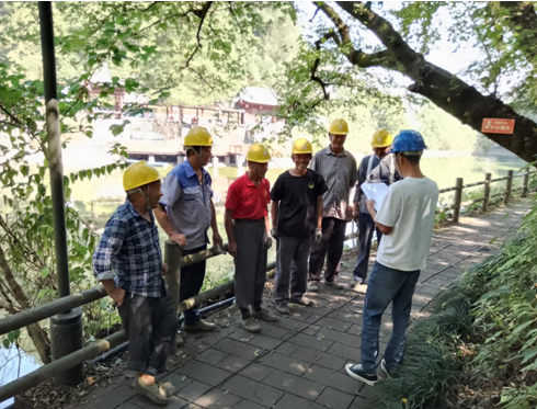 此次主要對戴震公園珠塘沿線基礎(chǔ)設(shè)施進(jìn)行整體提升改造,施工內(nèi)容包括更換路燈,增設(shè)欄桿、龜背燈,改建臺階,出新現(xiàn)有亭廊等。由于項(xiàng)目位于中心城區(qū),游客及鍛煉市民較多,施工工作面狹窄,多處臨塘施工高差較大,工程開工前,公司項(xiàng)目部編制了具體的施工方案并做好安全技術(shù)交底工作,確保施工人員自身施工安全及園區(qū)游客出行安全。