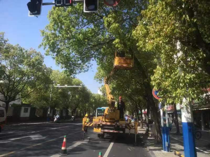 為了保障路燈夜間照明效果和出行安全,市政園林公司出動(dòng)高空作業(yè)車(chē)1輛,作業(yè)人員10名對(duì)該路段的行道樹(shù)進(jìn)行修剪。本次修剪工作于4月20日結(jié)束,共修剪行道樹(shù)20余株。