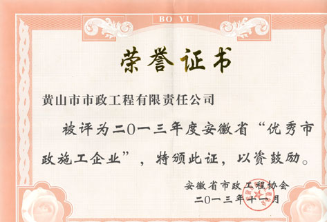 2013年安徽省優(yōu)秀市政施工企業(yè)